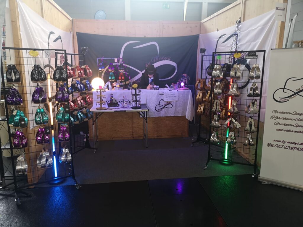 Besonderes Highlight am Messestand waren die gravierten Steigbügel, die durch ihre Kombination aus hochwertiger Verarbeitung und individueller Gravur viele Besucherinnen und Besucher begeisterten. Zahlreiche Reiterinnen und Reiter nutzten die Gelegenheit, sich direkt vor Ort von der Qualität zu überzeugen und mehr über die Möglichkeiten der Personalisierung zu erfahren.