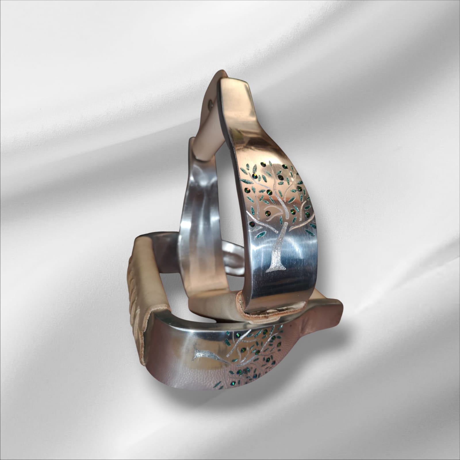 Diese einzigartigen Steigbügel werden mit größter Sorgfalt und Liebe zum Detail verziert. Die Steigbügel wurden in liebevoller Handarbeit graviert.